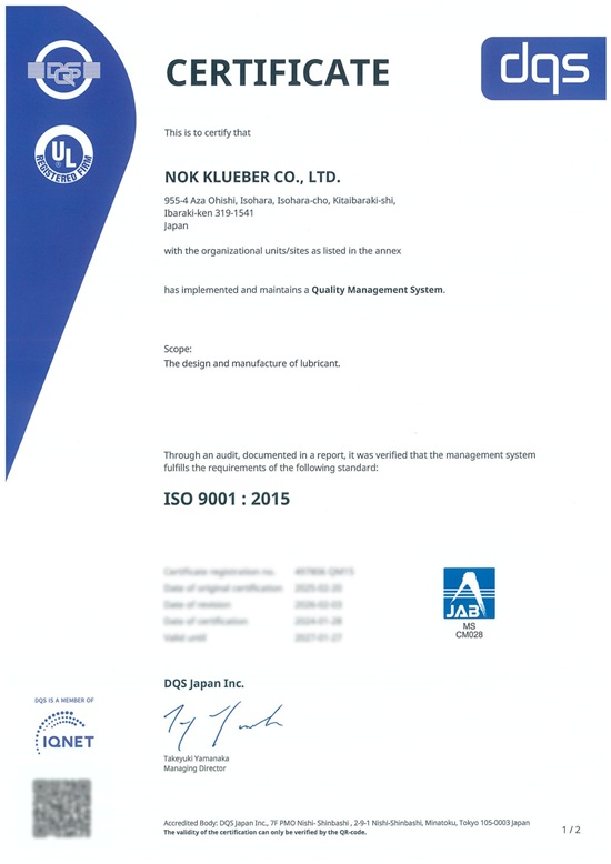 NOKクリューバーは2000年にISO9001の認証を取得しました。