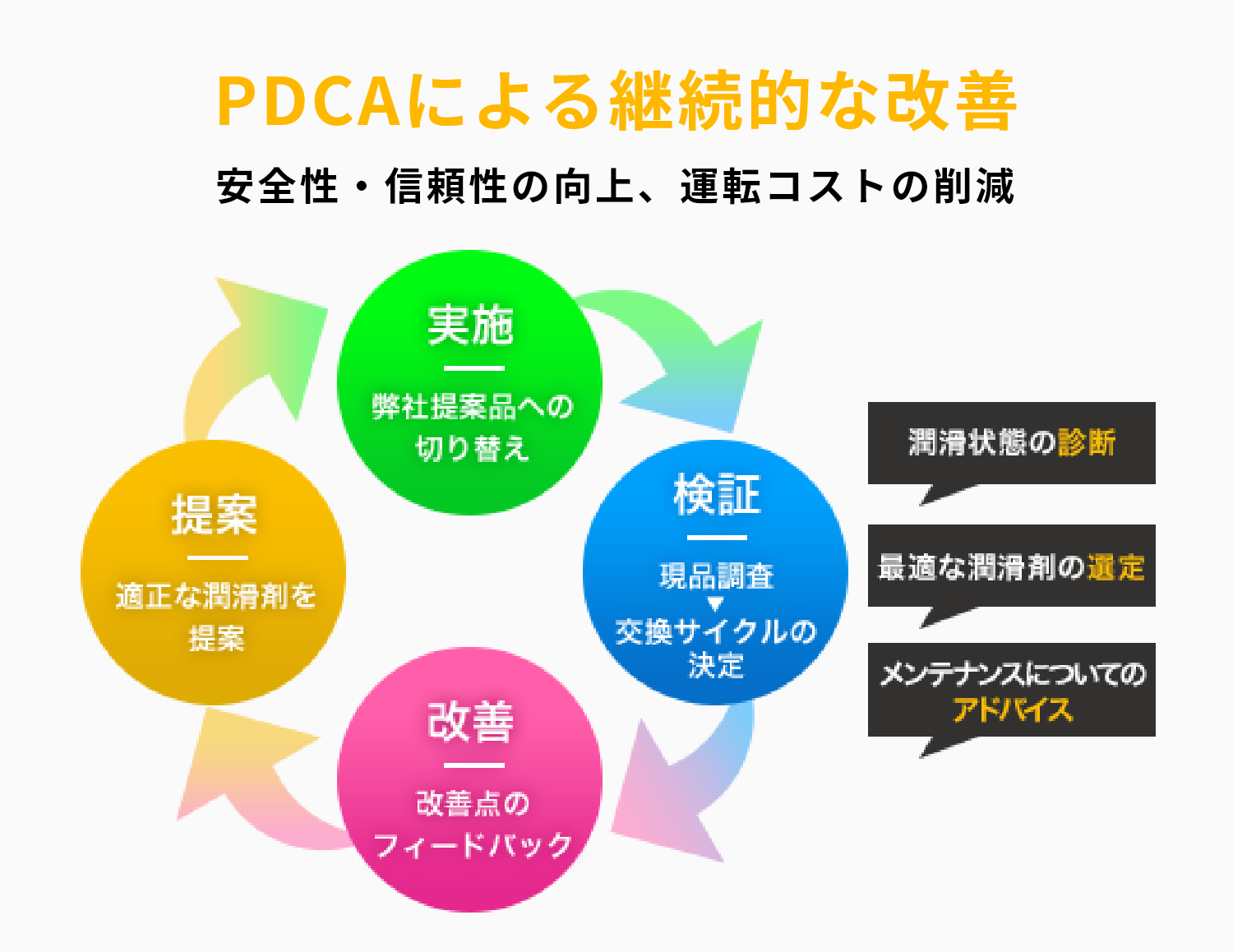 新たに潤滑剤の購入や、ご使用中の潤滑剤の変更をご検討中の方、NOKクリューバーは、潤滑剤の販売だけではなく、使用するさまざまな用途・環境に応じて、適切な潤滑剤の選定・管理・運用方法をトータルサポートいたします。
