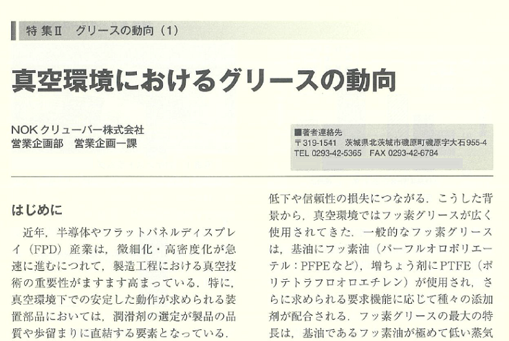 雑誌「潤滑経済/2025年10月号」の「特集/グリースの動向」の中で「真空環境におけるグリースの動向」というタイトルで記事を寄稿しました。